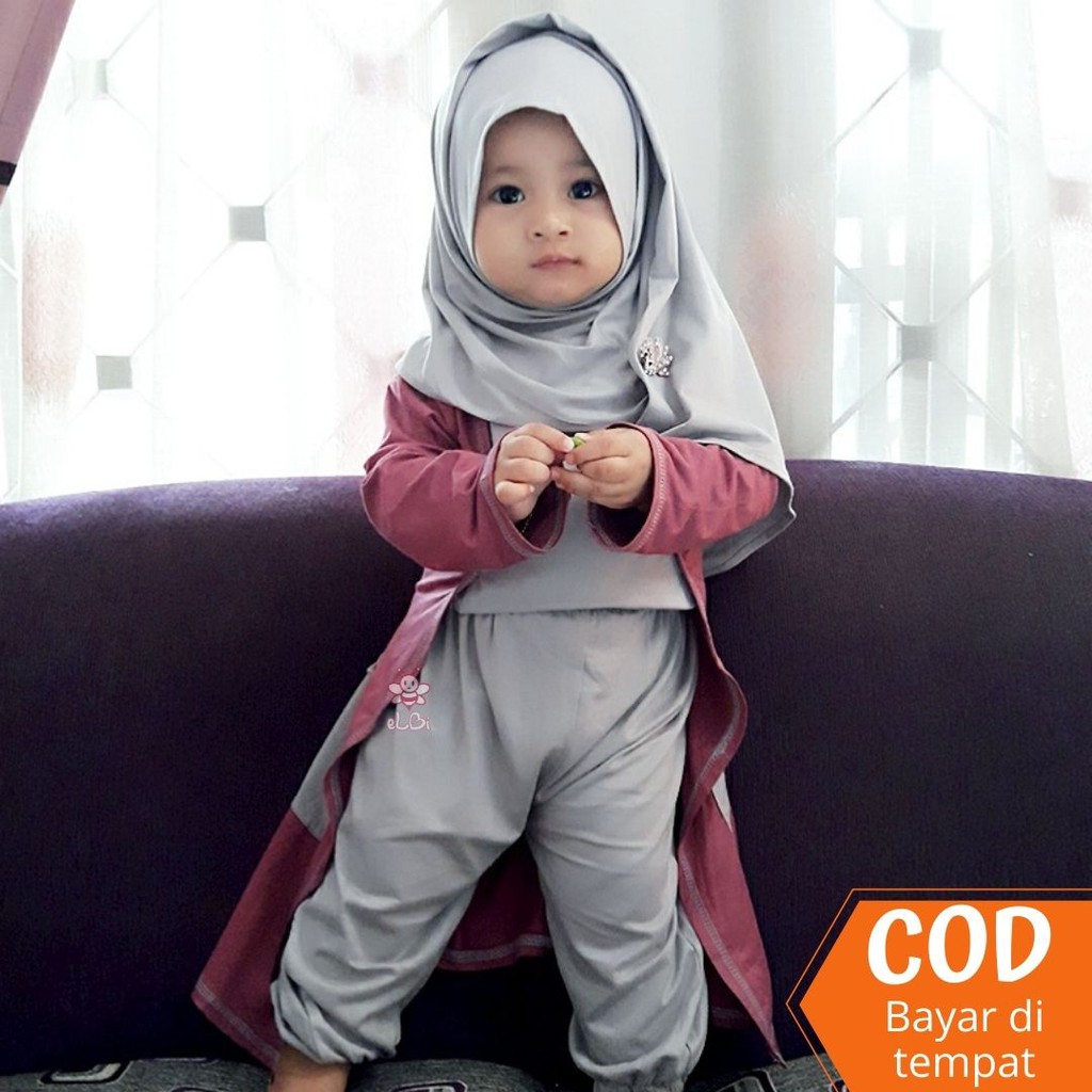 Jual eLBi Gisela Set Baju Muslim Balita Setelan Baju Anak Perempuan dengan Cardigan Pasta